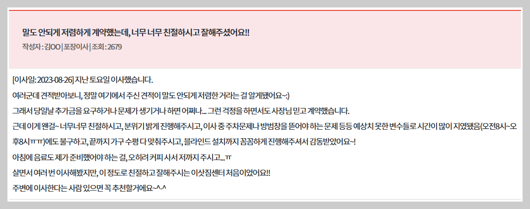 - "정리까지 세심하게 해주셔서 정말 감사했어요!"