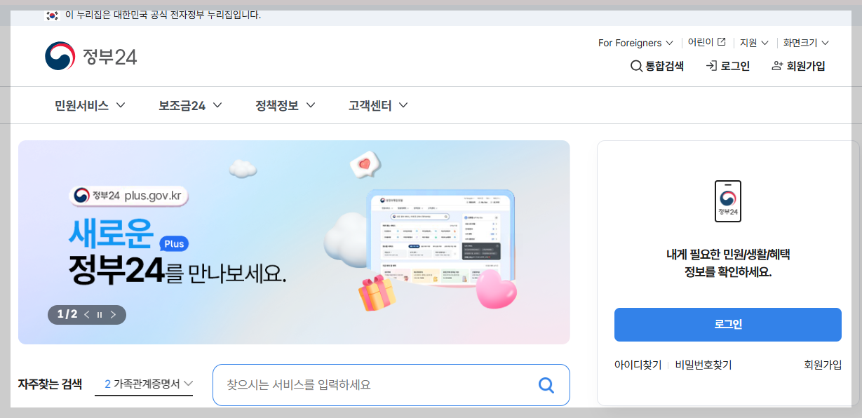- PC 사용자: 정부24 공식 홈페이지 접속